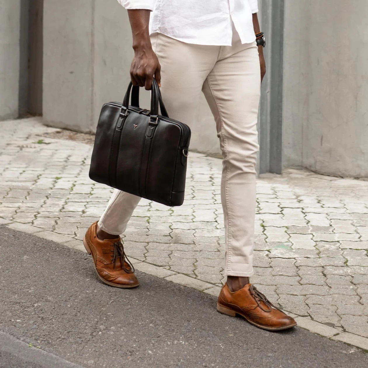 Armstrong 15" Slimline Leather Laptop Bag, Black